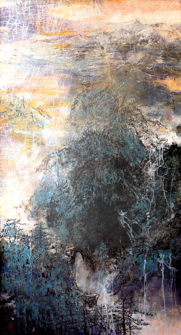 In 2019, the artist was inspired in a restaurant across from the mountains in Banff. The beauty of the snow-capped mountains and glaciers deeply touched his heart, so he carefully depicted them, creating many works. At that time, the restaurant manager informed him that this mountain was completely covered in thick ice a hundred years ago! Now only 20% of the snow-capped mountains remain, and it is predicted that there may be no ice at all in a hundred years! These touching words are thought-provoking. Humanity's disregard for the natural environment and the devastation of the greenhouse effect may prevent future generations from seeing this beautiful scenery and cause irreparable damage to the Earth. Therefore, this work - painted by ,John Wong , - composes a deep impression of melting snow, hoping to awaken humanity's cherishing and love for the Earth.