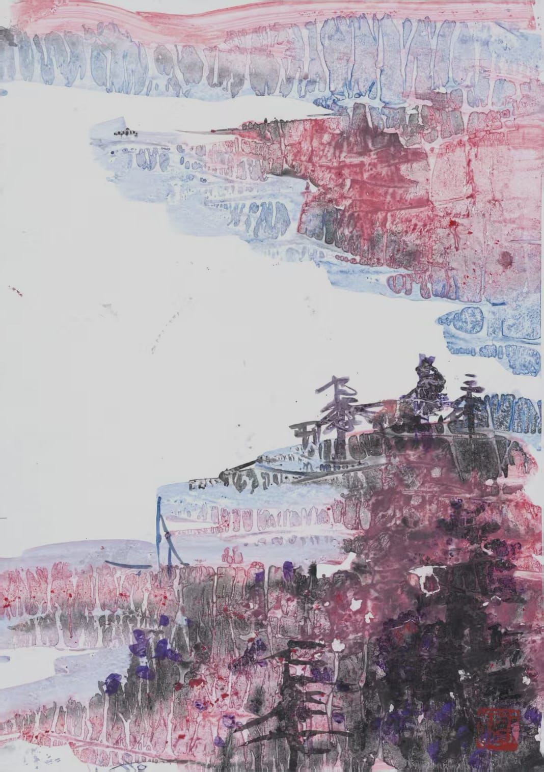 The artist's brush leaps on the paper, like autumn wind brushing through a crimson forest. In this red woodland, stories unfold with each stroke. The crimson forest is not just a sea of red leaves but also a fairy-tale kingdom hiding secrets.
