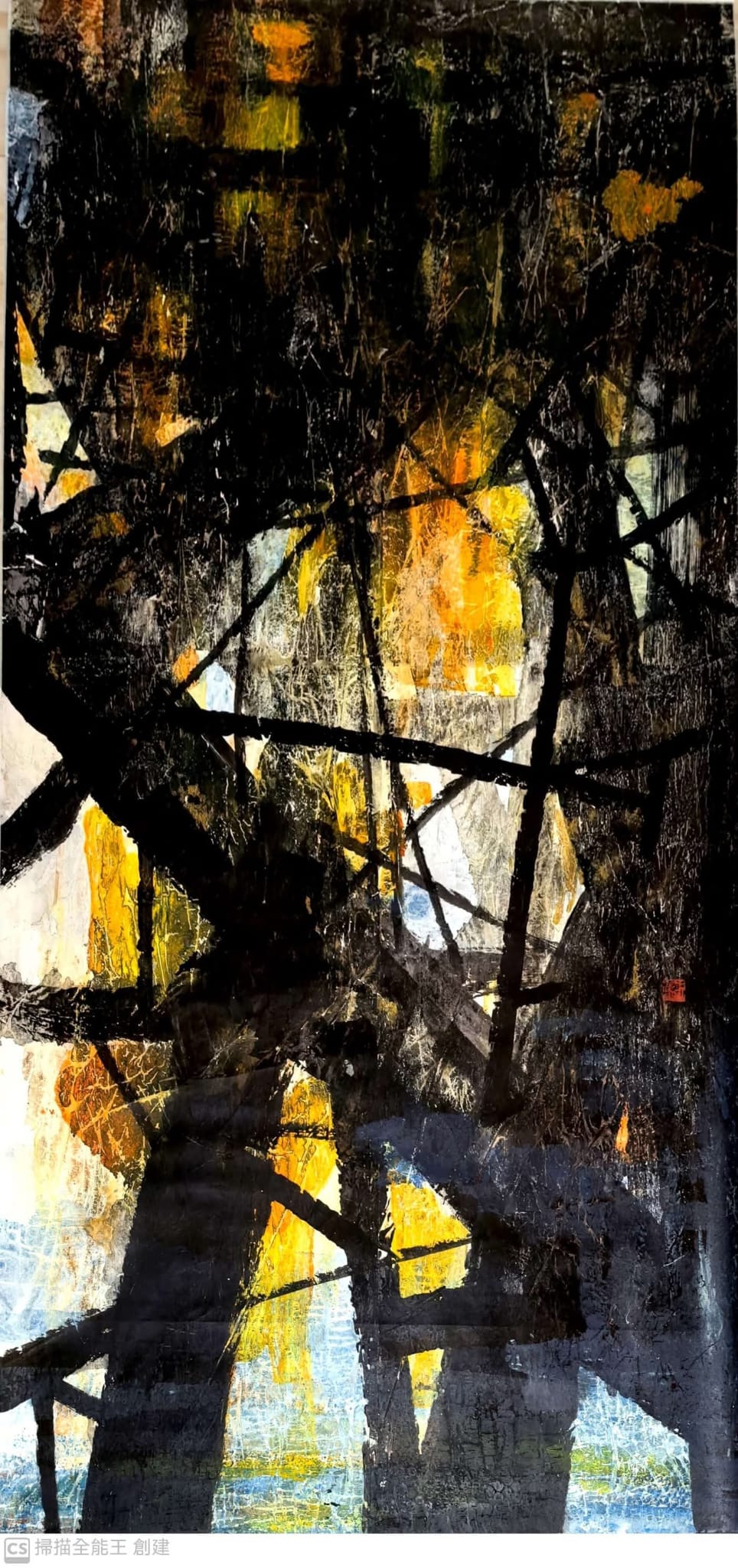 藝術家捕捉了這些結構的本質,畫面中的筆觸有如中國隸書般有力,呼應著海洋守護者的力量與堅韌。作品的構圖精湛巧妙,流露出一股庄重與敬畏之情,激發對自然界和人類智慧的深深尊重。這是一幅作品,既展現了這片獨特海景的美麗,也彰顯了其中的沉重與莊嚴,使人對這獨特景觀心生敬意。