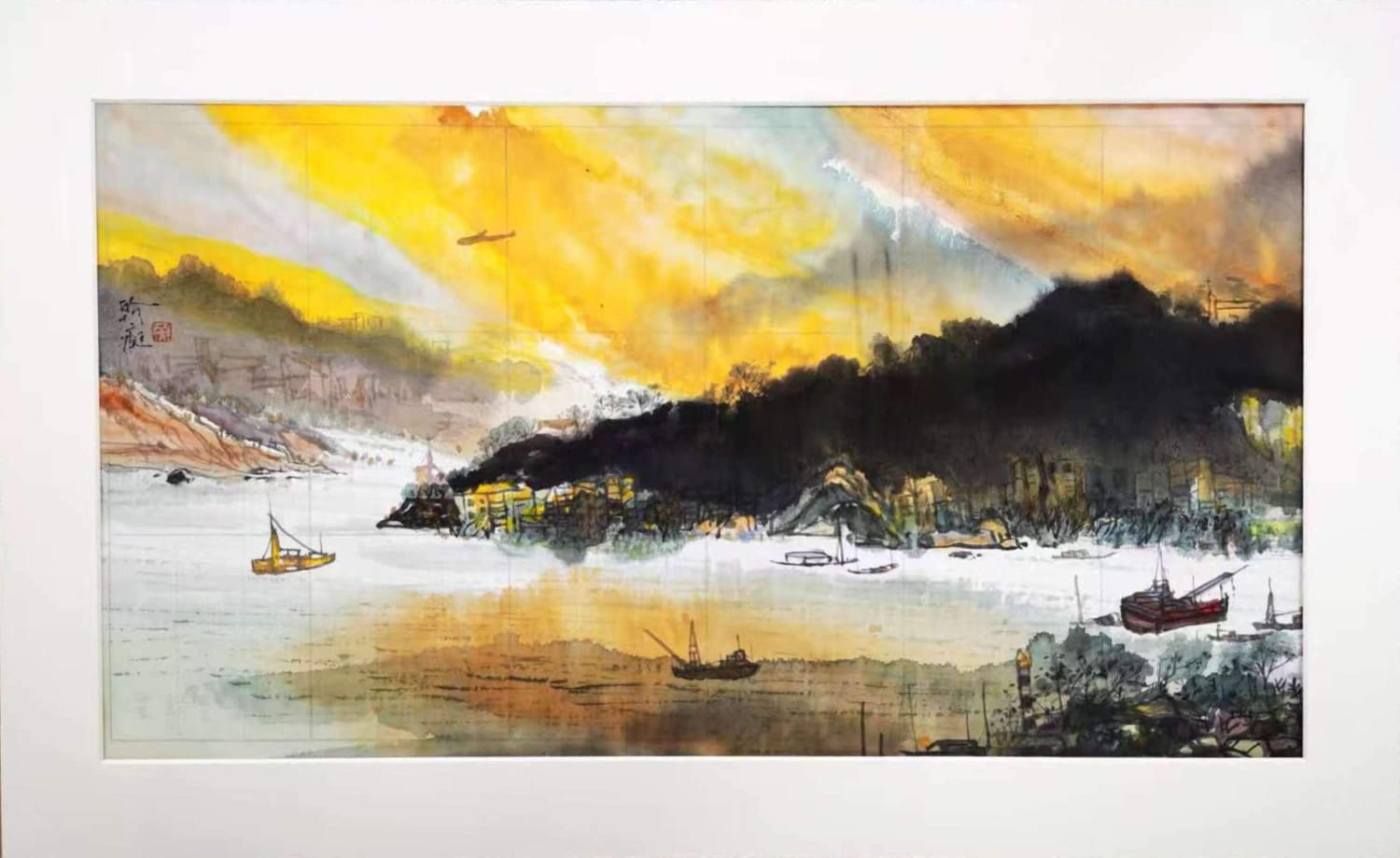 The buildings, trees, and small boats in the painting, illuminated by the sunset, emit warm colors, telling the story of this land. Viewers can wander in a poetic space, feeling the cultural heritage and history.
